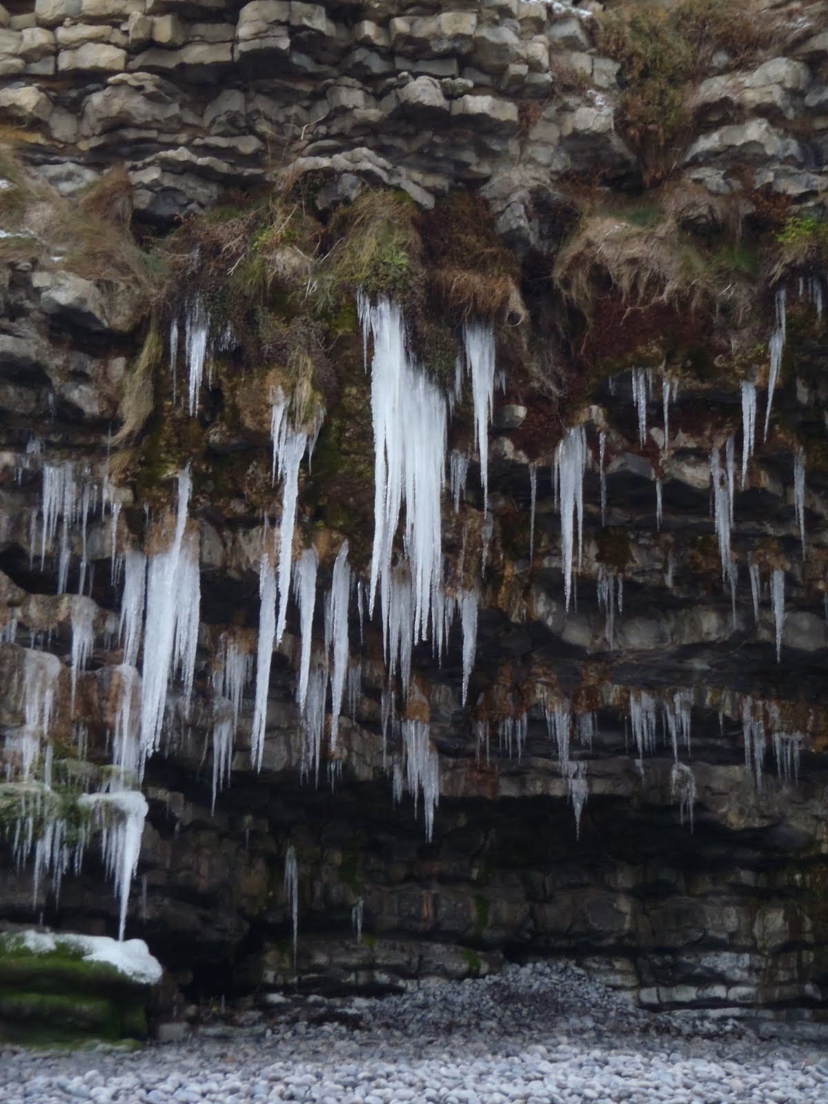 Beneath the cliffs of Fontygary caravan park huge icicles clung to the overhanging cliffs.