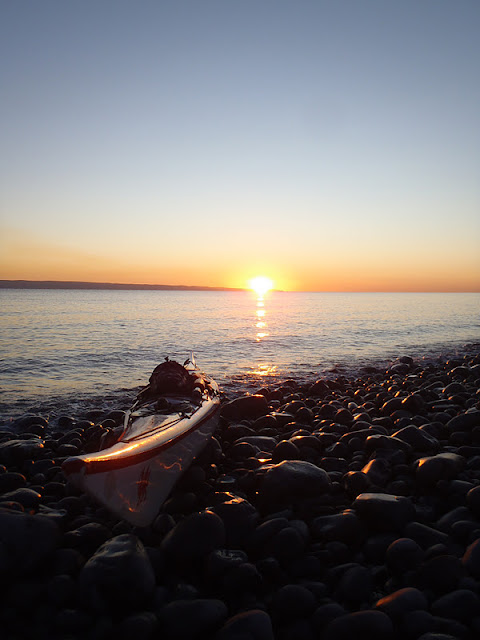 I spent all day yesterday on my boat project. I have received a few needed bits and pieces and spent the day planing, sanding and filling and cutting the cockpit. (The cockpit above is cardboard for size). I spent this morning cutting the cockpit recess and could easily have spent another day whittling away but decided it was about time I actually did some paddling...I left my local Gilestone beach a couple of hours before high water and sunset. The plan was a short paddle to investigate the landslip at Porthkerry caravan park that fell last Monday.