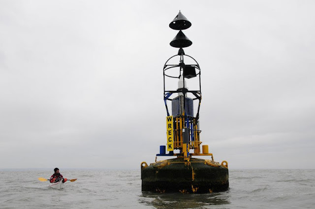 The paddle back was uneventful, I think we were all keen to get back on Welsh soil. Mid crossing we came across two cardinal markers, the location of a wreck. The Sea King rescue helicopter also made a flyby as we approached the shore.
