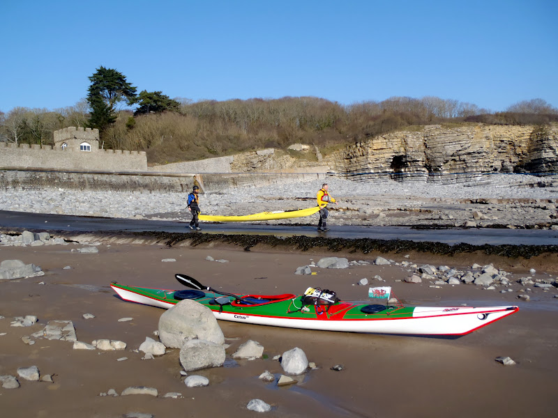 I met up with Taran and Eurion at 12:30 Saturday at St Donnats Atlantic College to load up the kayaks. By 13:30 we were ready to go. We let the coast guard know our plans and set off into the low winter sun.